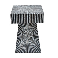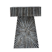 PYRAMID MOTHER OF PEARL HAND MADE SIDE TABLE Add a touch of elegance to your home with our handcrafted Pyramid Mother of Pearl Side Table. The intricate design and luxurious material bring a sense of sophistication and style to any room. You'll love the way it catches the light and adds a touch of natural beauty to your living space. Whether you're using it as a statement piece or a functional addition, our side table is sure to impress and elevate any home decor. Experience the quality and craftsmanship for yourself and transform your living space with our Pyramid Mother of Pearl Side Table!