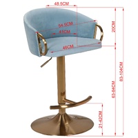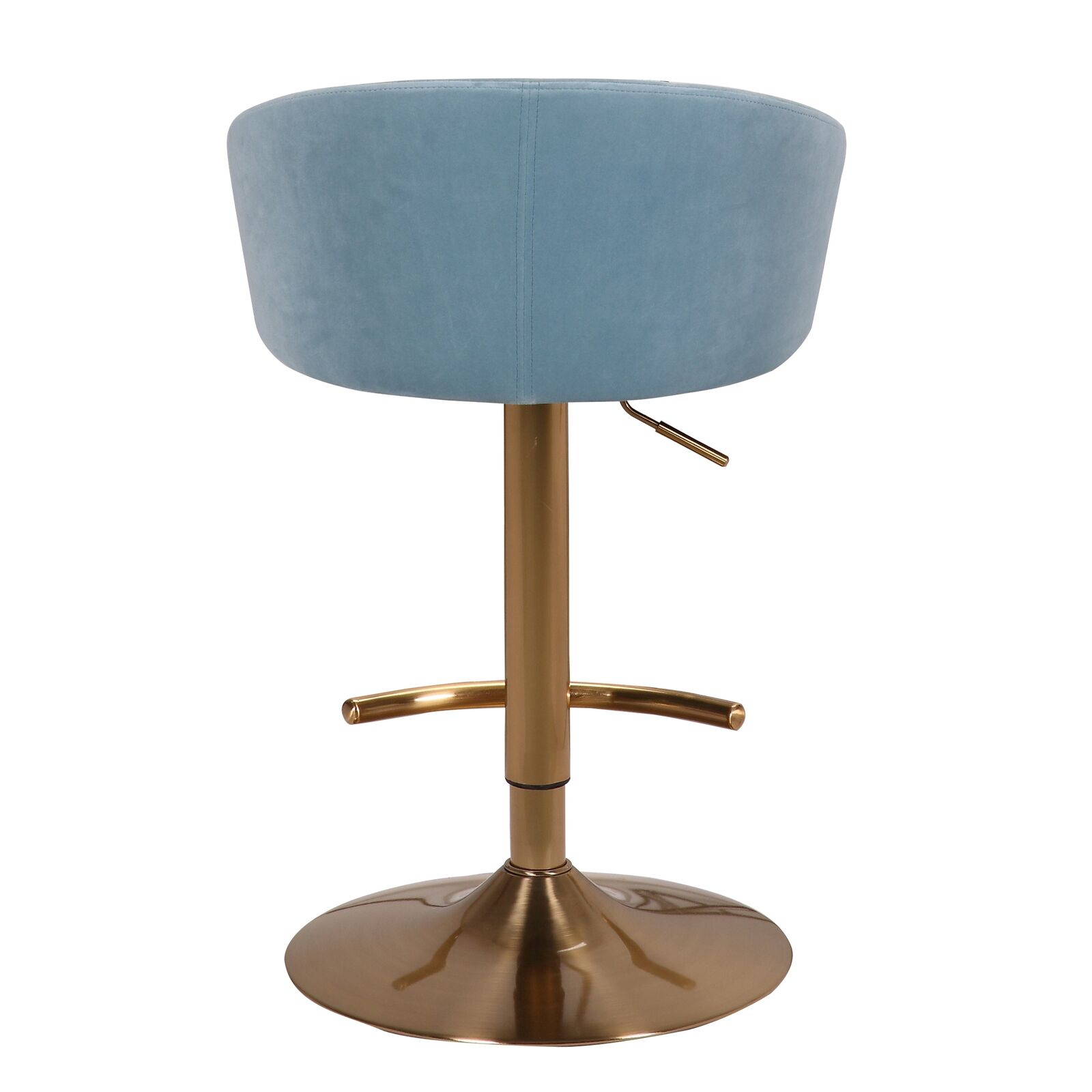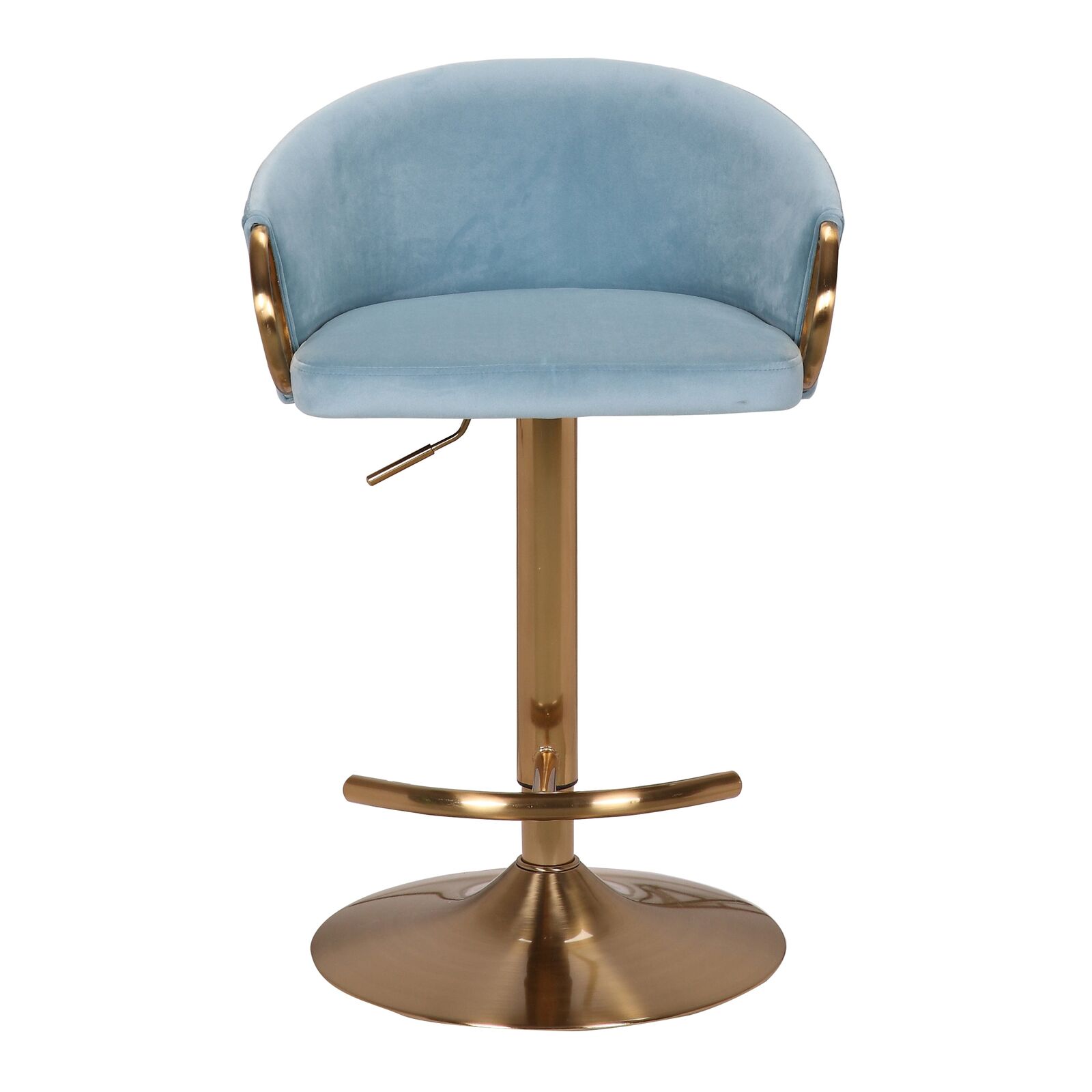 Impart a touch of regal air to your kitchen bench with our Gas Lift Bar Stool. Offering magnificent comfort, its gleaming gold-brass chrome base pairs beautifully with a touch of luxurious blue velvet to create a superior piece of furniture that complements any modern style..