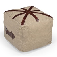 A modernised Union Jack emblem made from distressed leather against the cool toned canvas features on our No 6 Square Ottoman. Contemporary sheik design that won't going out of style anytime soon !
