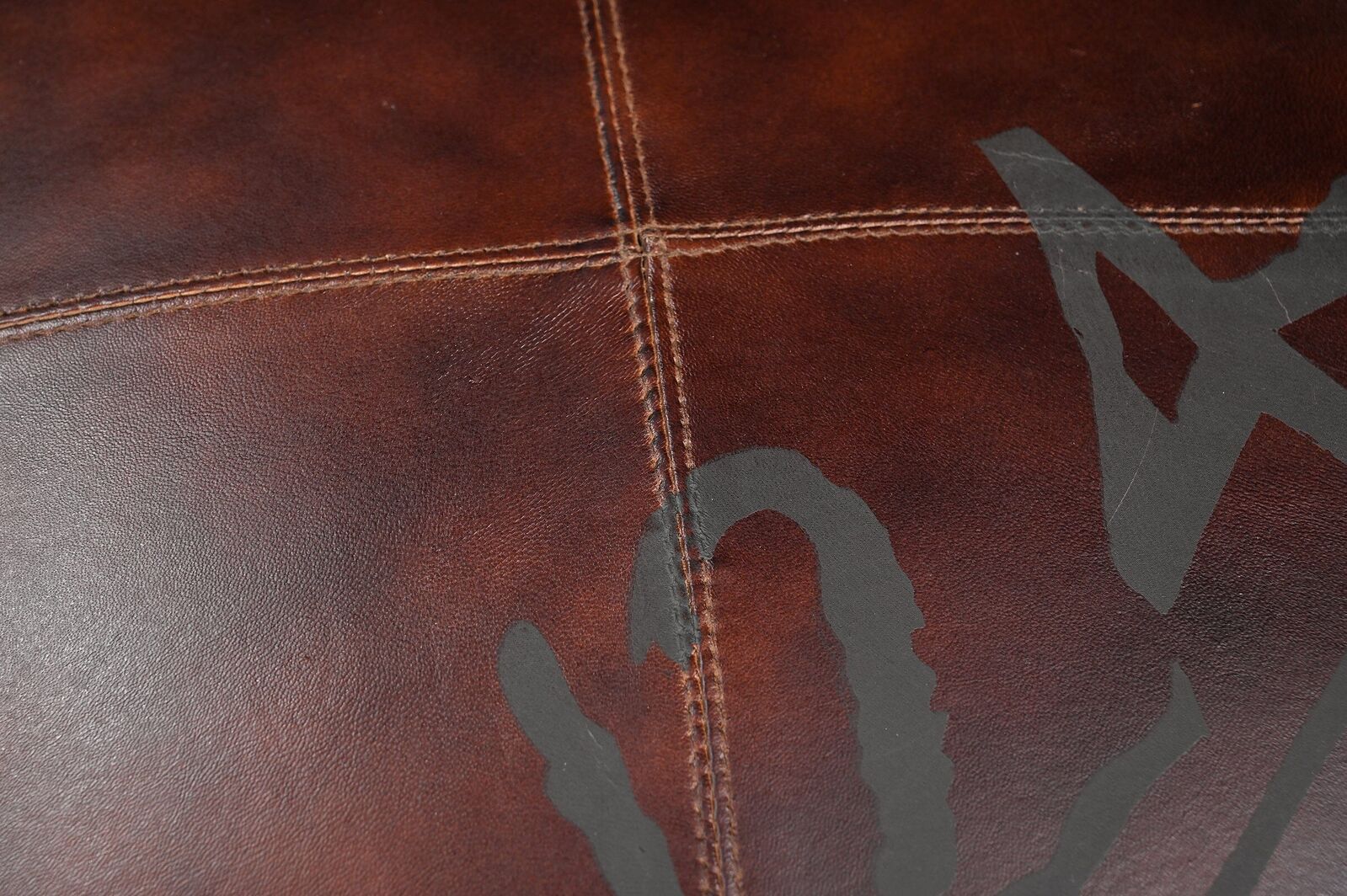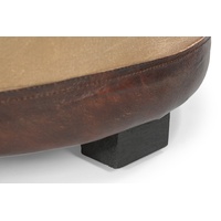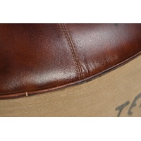 The rich, distressed leather and old Indian army tents used to create our Vintage Round Ottoman create a unique, classic and eye-catching decor piece. A wonderful addition to studies, living and entertaining areas.