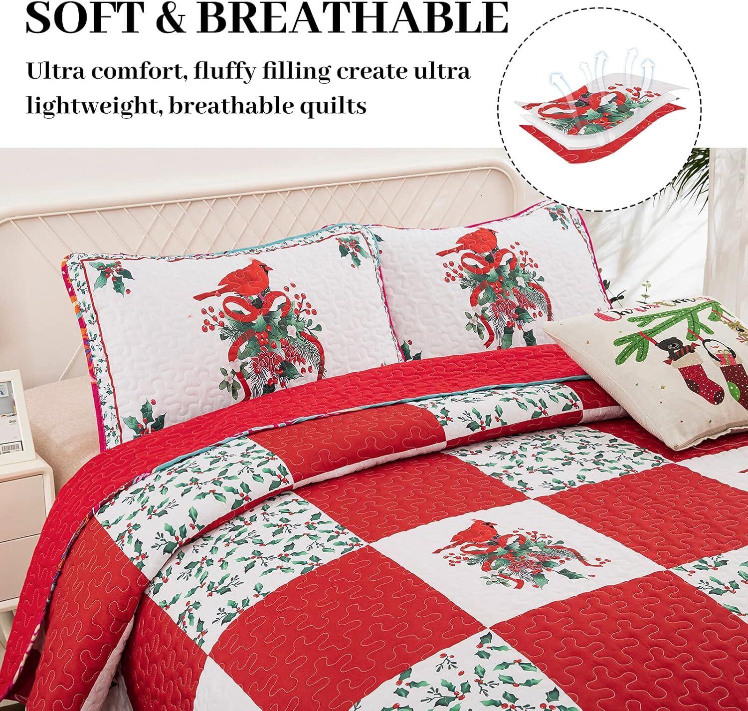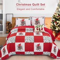 Enhance the comfort and charm of your bedroom this holiday season with our Queen Size Christmas Quilt Bedspread Set. Featuring delightful Santa Claus, reindeer, snowman, and snowflake designs, this reversible coverlet is perfect for creating a cozy and festive retreat.