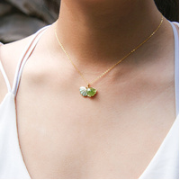 Elevate your style with our stunning new Green Shell Aroma Choker Necklace, a harmonious blend of exquisite design and timeless aroma. Crafted with care, the pendant and chain gleam in 925 stirling silver coated in 18k gold plating, while the Murano Glass pearl (6 dream colours) are meticulously hand-blown, each tucked in the gilded green shell.