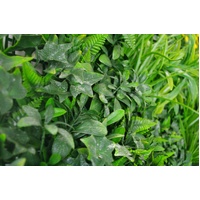 Artificial Vertical Gardens are the perfect way to add greenery to any wall, fence or vertical surface. The best thing about artificial plants is that they dongreening require maintenance. The Green Tropics is the perfect mix of greenery: grasses, ivy leaves, ferns and extended branches all make for the perfect green wall. They are also perfect for offices, or shops to add some greenery indoors. These beautiful evergreen hedge panels are perfect for indoors or out, and super easy to install. They can be joined together using the hole and lug system around the outside of each panel to make any size you want. Alternatively, they can be cut along the grid and the back to make them as small as you desire. Due to the lush nature of the vertical garden they are more fragile than some of the other screens, and you may need to cable tie on the stems (grasses, and branches) in high wind areas. Each panel comes as a 1 meter by 1 meter panel (as pictured).