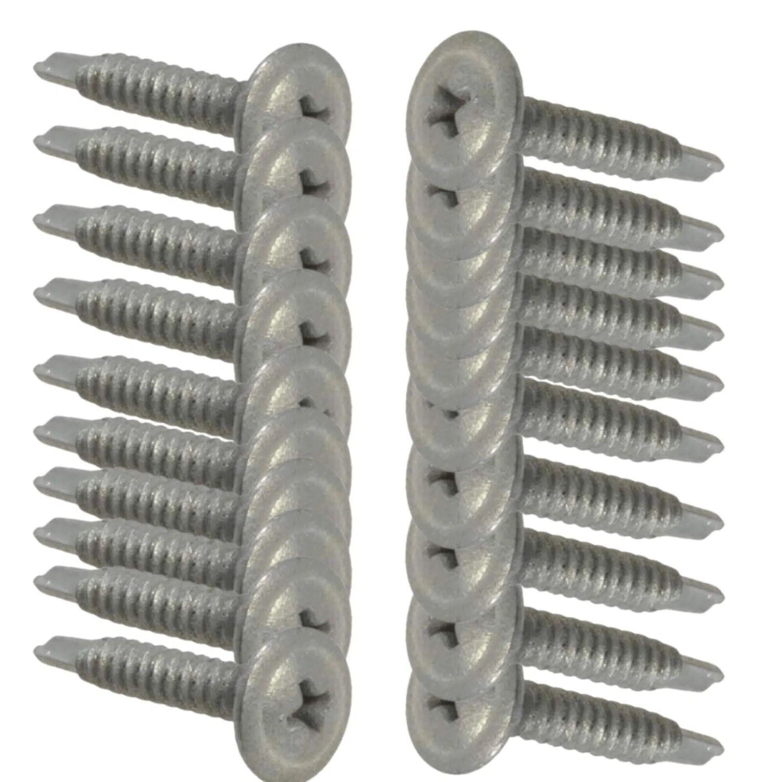 If you need to attach your artificial green wall onto a cement sheet, these screws are perfect. Made with a self drilling head they can be quickly affixed into any such wall. Simply ensure the wide head overlaps with the green wall panel whilst attaching. We would recommend around 1 screw per 25cm section.