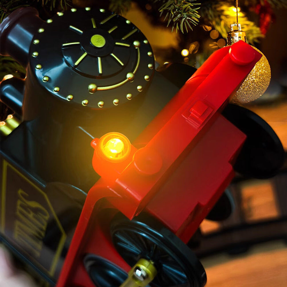 There are train tracks surrounding the Christmas tree, and the classic train pulls large-capacity carriages that can be used to place small gifts or toys. The train runs around the Christmas tree, It also has music and light锛?/span>adding to the Christmas atmosphere.