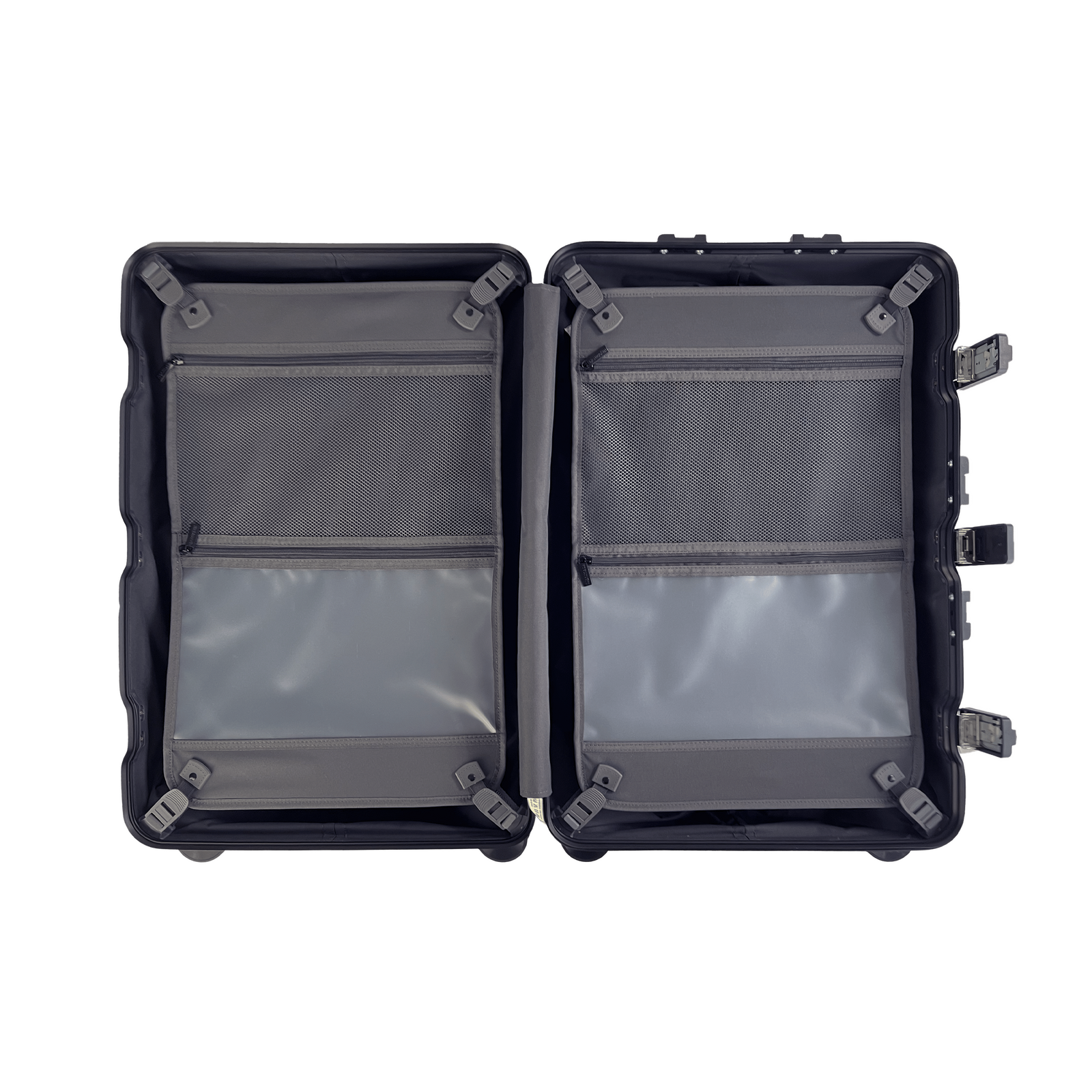 Our Flightmode Travel Suitcase Medium is the perfect companion for your next 7-10 day trip. With its luxury anodised aluminium finish, reinforced wheel structures and double TSA approved latch locks, this suitcase is a dream to travel with. Showcasing our iconic 360 double wheels and inner divider pads secured by a zipper, it's big enough to pack everything you'll need - including your laptop, books and work materials - yet still lightweight!