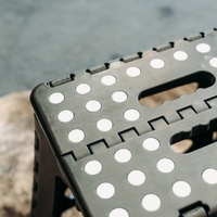 This folding stool is perfect for camping, fishing. The foldable legs keep it compact and portable. It will fit easily into your backpack or carry-on and is made of strong plastic that can bear 125kg weight.