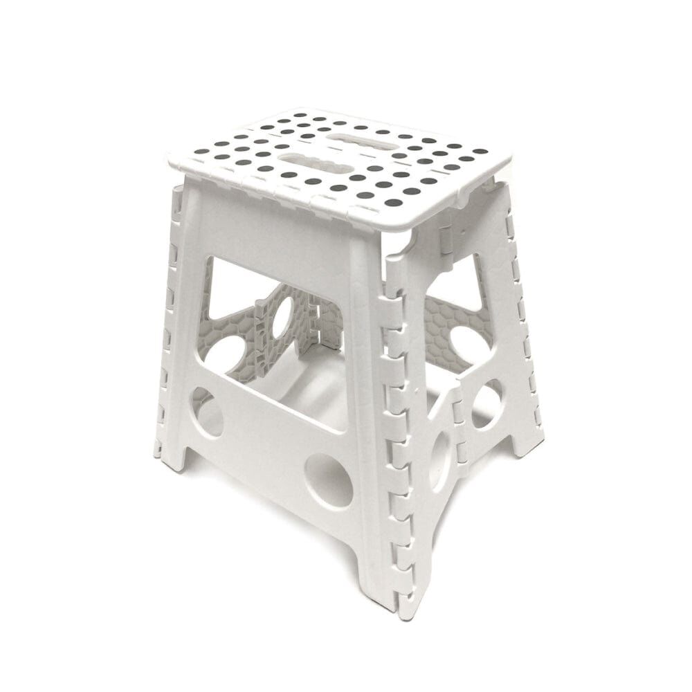 This folding stool is perfect for both indoor and outdoor activities. The foldable design keep it compact and portable. It will fit easily into your backpack or carry-on and is made of strong plastic that can bear 125kg weight.