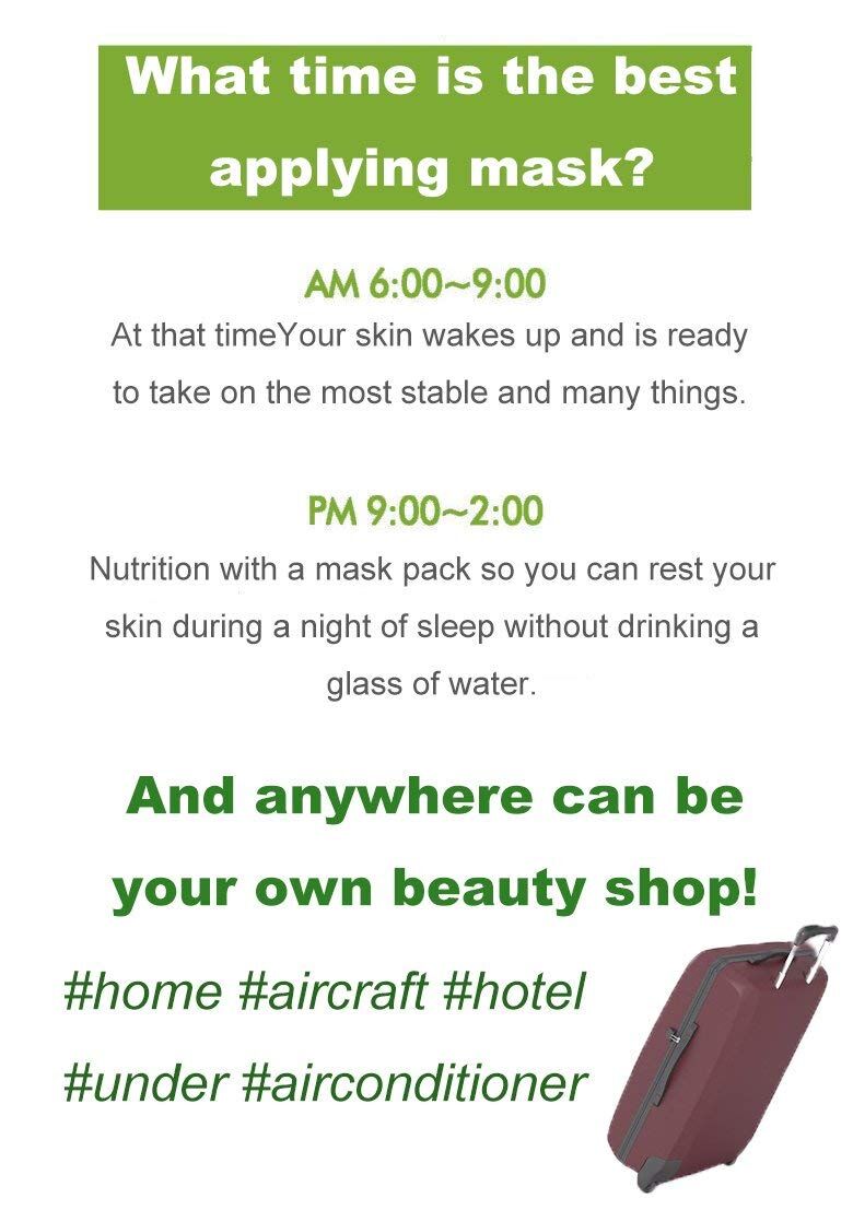 You can get clear and elastic skin within 20 minutes in anywhere - in dry aircraft, in hotel and for relaxing in business trip, you can care your skin easily with this effective facial mask.