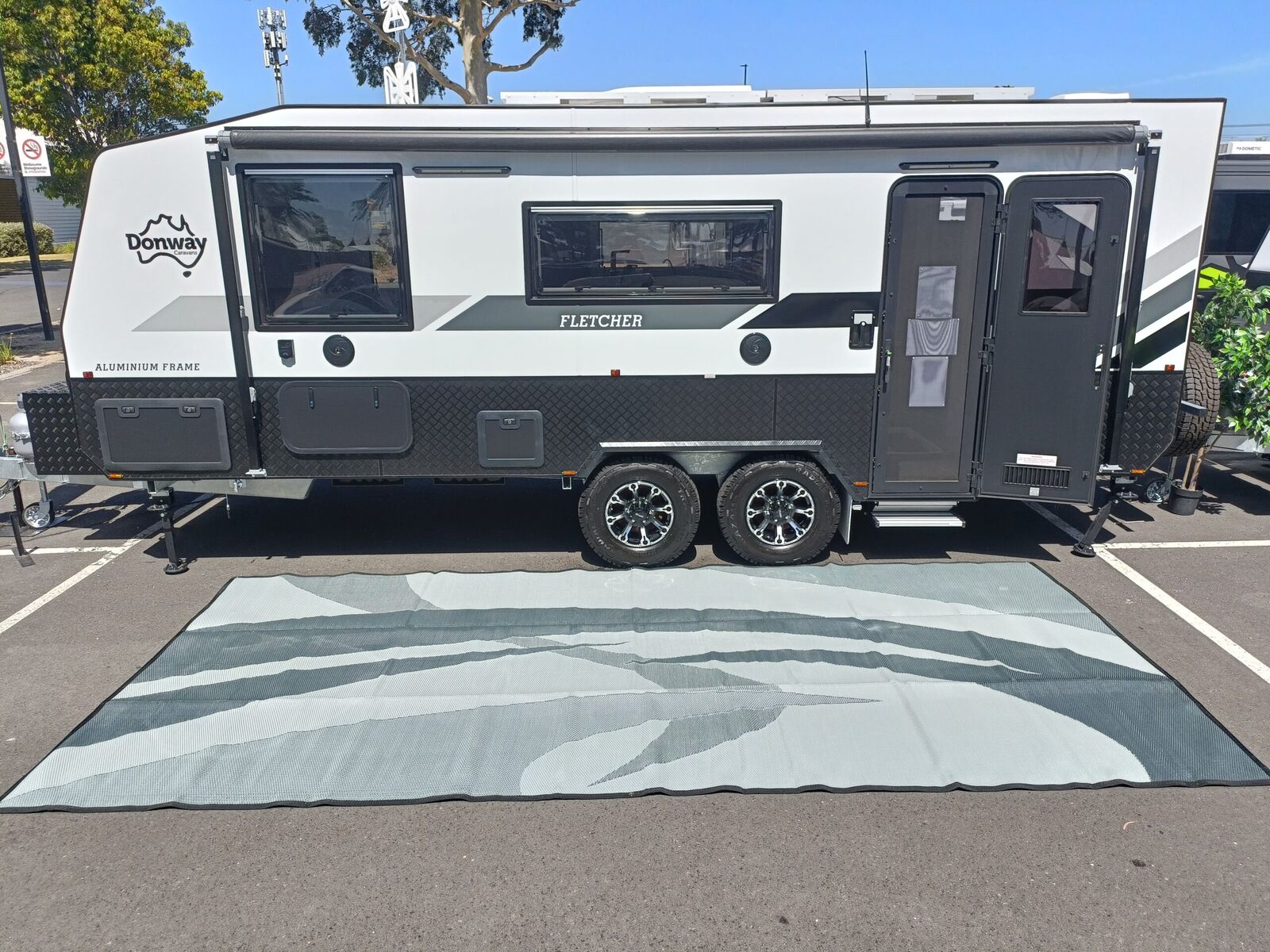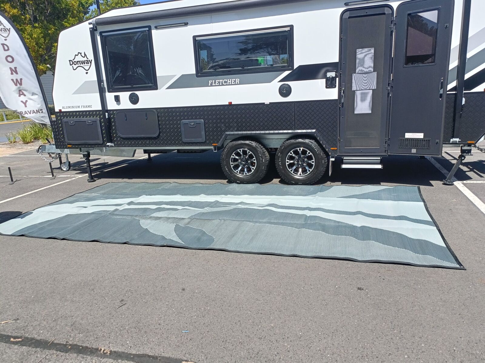 Take your outdoor adventures to the next level with our spacious 5m x 2.4m recycled poly camping mat, specially designed for 18ft to 21ft dual-axle vans. Lightweight yet durable, this mat is packed with features to enhance your camping experience while supporting sustainability.