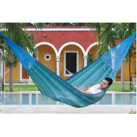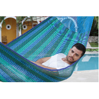 The Out and about hammock is your best friend to take anywhere with you. Because it weights less than 1 kilogram, supports up to 150 Kilograms, is handwoven with cotton and is the most comfy hammock in the whole world due to the diamond Mexican pattern.