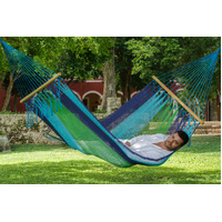1x Mayan Legacy Queen Size Outdoor Cotton Mexican Resort Hammock No Fringe in Oceanica Colour