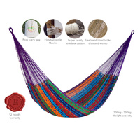 Kick back and relax for a very sweet nap in this gorgeous Mayan Legacy hammock. Hand woven from 100% cotton rope in a variety of colours that will brighten up any patio or porch area. Just add a pair of straps or a frame and enjoy.