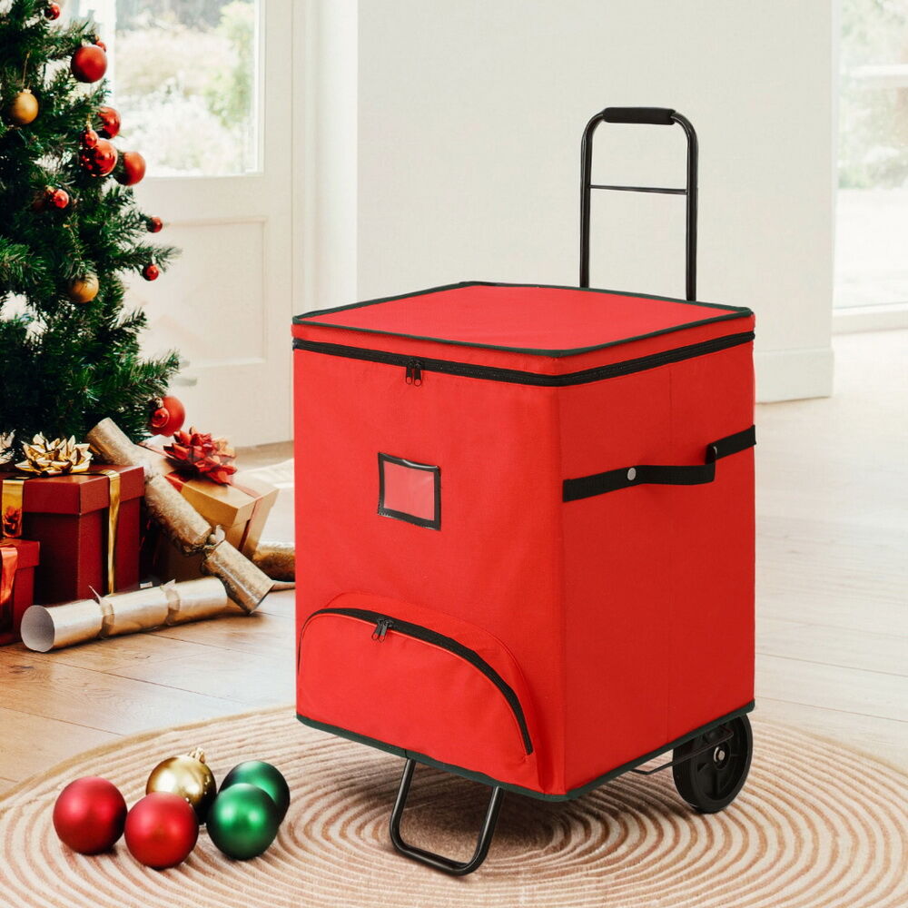Christmas ornaments storage roller cart