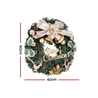 Celebrate the holiday season with the Jingle Jollys Green Christmas Garland. Measuring 60cm. Made from non-toxic and odour-free materials, it is perfect for both indoor and outdoor use. Decorated with a gold bowtie, decorative balls, and a charming reindeer, this garland adds an elegant and whimsical touch to your Christmas décor.