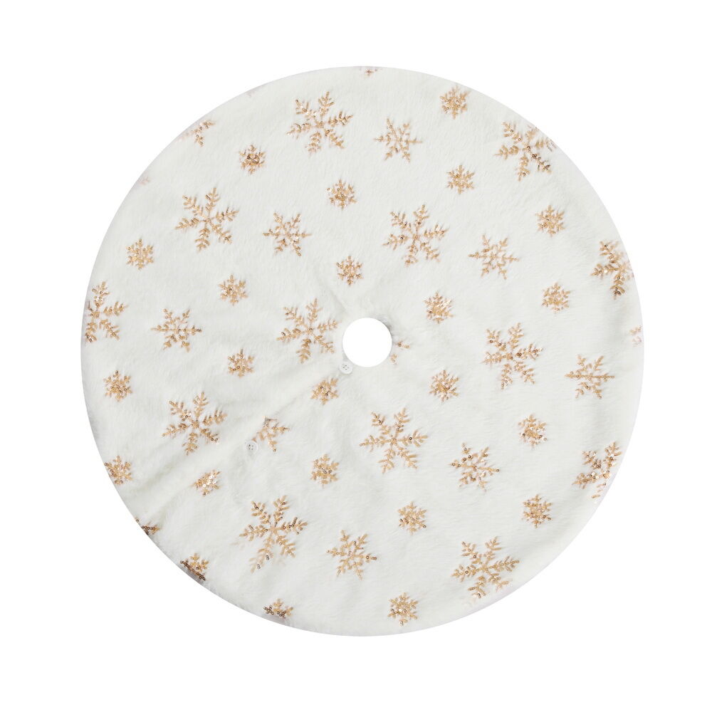 Complete your holiday décor with the Jingle Jollys Christmas Tree Skirt, available in 90cm sizes. This stunning tree skirt features sequin snowflakes embossed on soft and fluffy fabric, adding a touch of elegance and charm to your Christmas tree. Designed with built-in buttons for easy fastening, it is made from two-layer material for durability and ease of care. Perfect for the dining room, living room, hallway, and more, this gorgeous tree skirt enhances the festive atmosphere wherever it is placed.